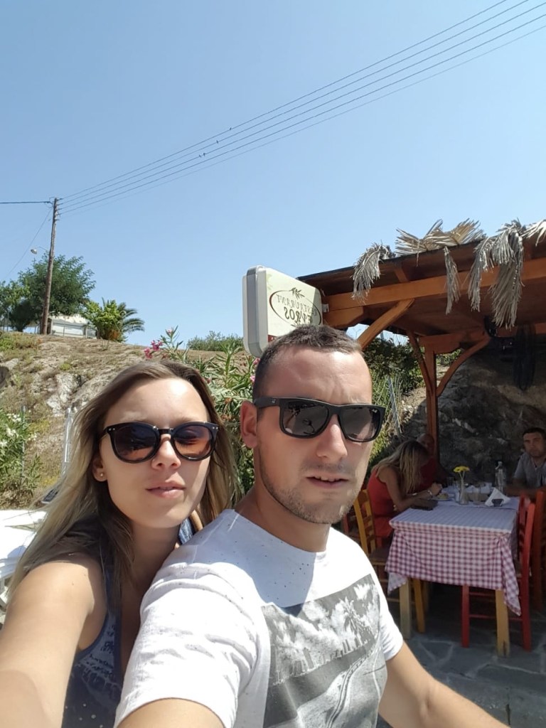 We also visited Orange beach, one of the most beautiful beaches in all Greece. The water on this beach is turquoise, clear, clear. The beach is almost non-existent, but there are rocks everywhere, where you can put your things down. My recommendation is to visit this beach in the early morning as it is very difficult to find a place later. There are not many cafes here, I think there is only one, and in the form of some trailers, where you can buy only coffee, water or juice, some of the most basic. That cafe doesn’t even have chairs you can sit on. Take-away drinks are taken here. There is no restaurant. There are no sun beds. So get ready to go to this beach.